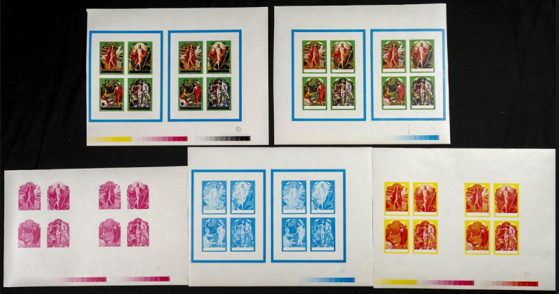 |**|Yvert B29. 1969. Easter. Group of progressive plate proofs of the set. TO EXAM. Description of lots is limited to the cataloguing of the stamps and their characteristics. The total of the material included in each case is