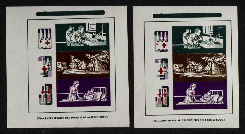 |**|Yvert B30. 1969. Red Cross. Group of progressive plate proofs of the set. TO EXAM. Description of lots is limited to the cataloguing of the stamps and their characteristics. The total of the material included in each case is