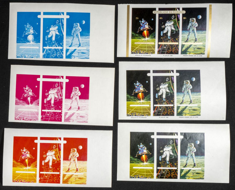 |**|Yvert B33. 1969. Apollo XI. Group of progressive plate proofs of the set. TO EXAM. Description of lots is limited to the cataloguing of the stamps and their characteristics. The total of the material included in each case is