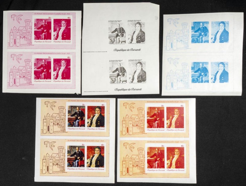 |**|Yvert B32. 1969. Africa Pope visit. Group of progressive plate proofs of the set. TO EXAM. Description of lots is limited to the cataloguing of the stamps and their characteristics. The total of the material included in each