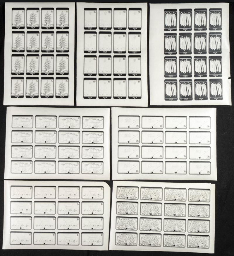 |**|Yvert 370/76. 1970. Expo 70 Osaka. Group of progressive plate proofs of the set. TO EXAM. Description of lots is limited to the cataloguing of the stamps and their characteristics. The total of the material included in each