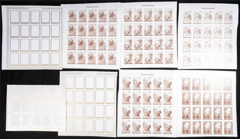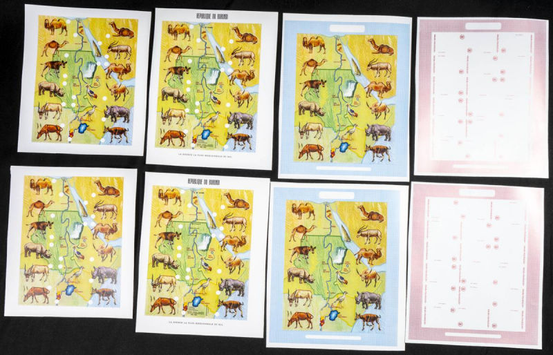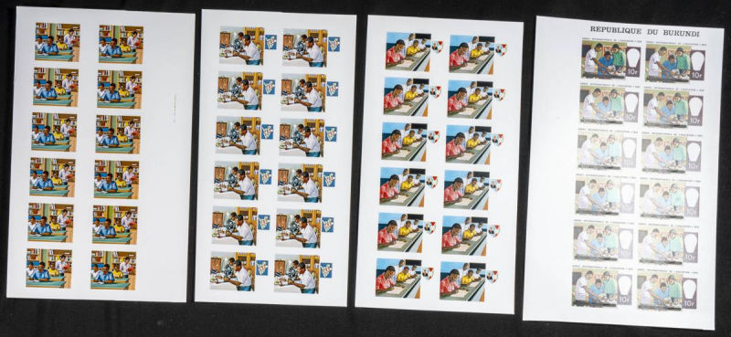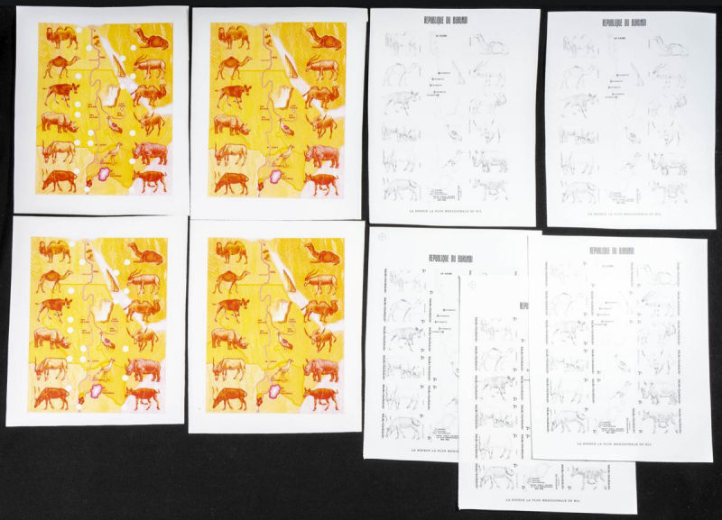 |**|Yvert 423/25. 1970. 4 years republic Burundi. Group of progressive plate proofs of the set. TO EXAM. Description of lots is limited to the cataloguing of the stamps and their characteristics. The total of the material