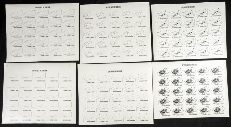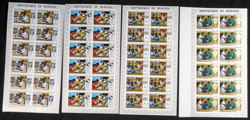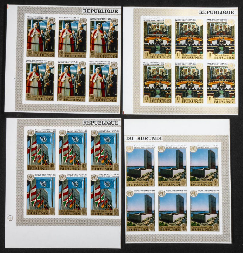 |**|Yvert 423/25. 1970. 4 years republic Burundi. Group of IMPERFORATED sets. TO EXAM. Description of lots is limited to the cataloguing of the stamps and their characteristics. The total of the material included in each case is