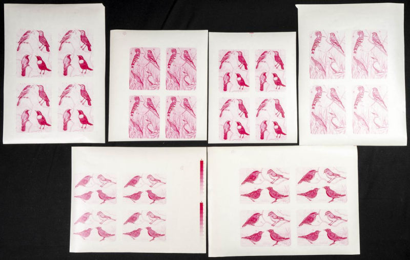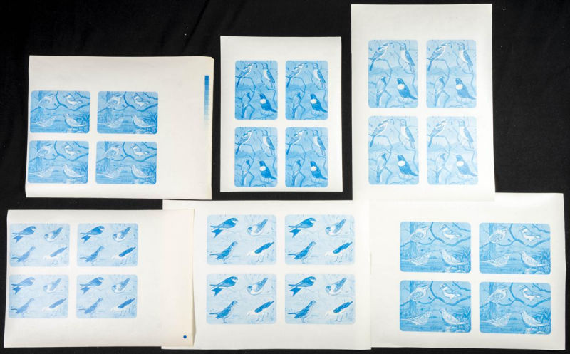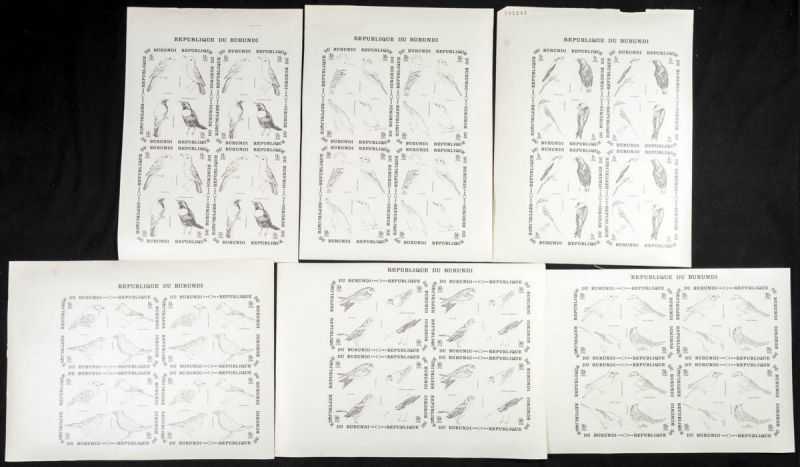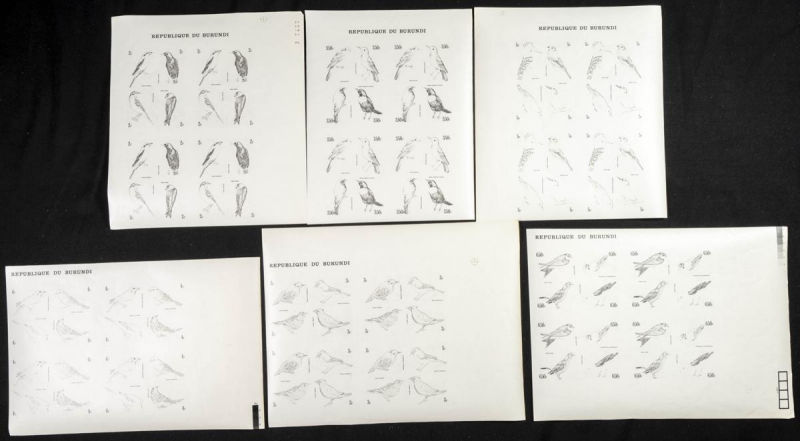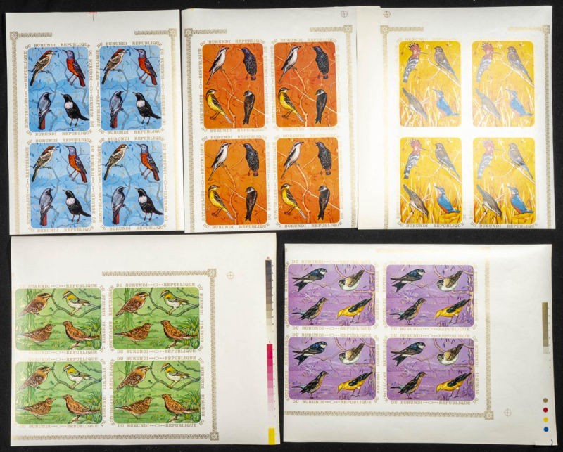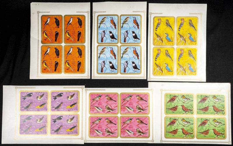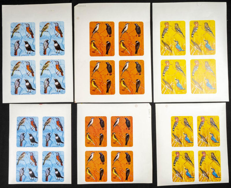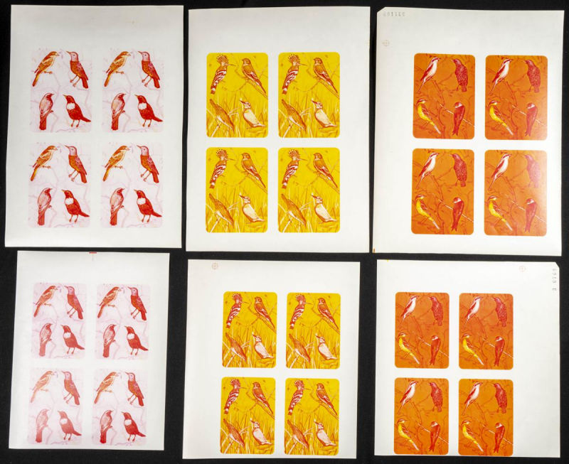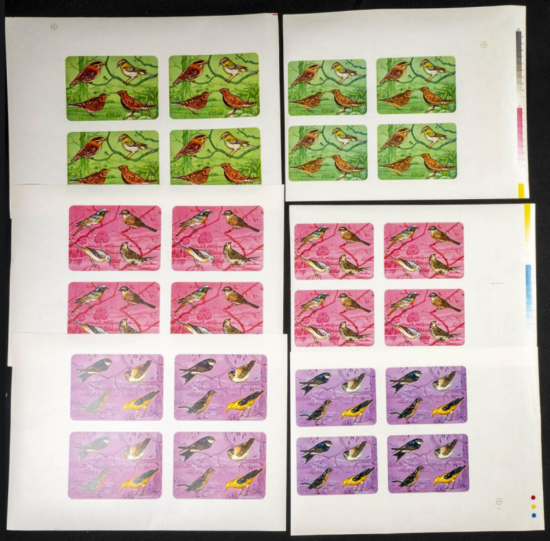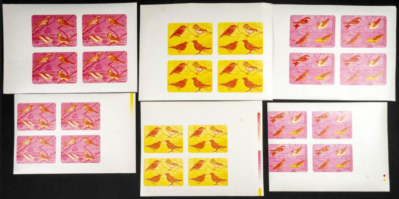 |**|Yvert . 1970. Birds. Group of progressive plate proofs of the set. (Michel: 621/56). TO EXAM. Description of lots is limited to the cataloguing of the stamps and their characteristics. The total of the material included in