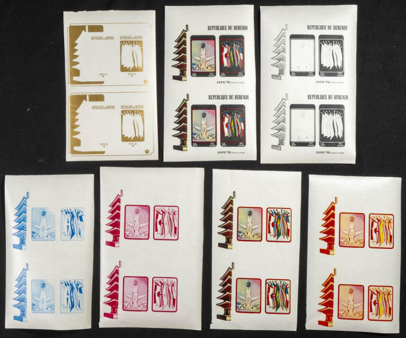 |**|Yvert B39. 1970. Expo 70 Osaka. Group of progressive plate proofs of the set. TO EXAM. Description of lots is limited to the cataloguing of the stamps and their characteristics. The total of the material included in each