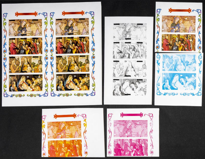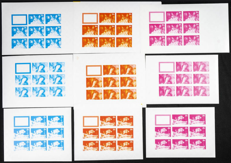 B6. 1975. Christmas. Group of progressive plate proofs of the set. TO EXAM. Description of lots is limited to the cataloguing of the stamps and their characteristics. The total of the material included in each case is photographed to allow