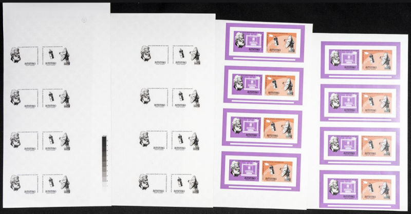 196/97. 1977. Telephone centenary. Group of progressive plate proofs of the set. TO EXAM. Description of lots is limited to the cataloguing of the stamps and their characteristics. The total of the material included in each case is