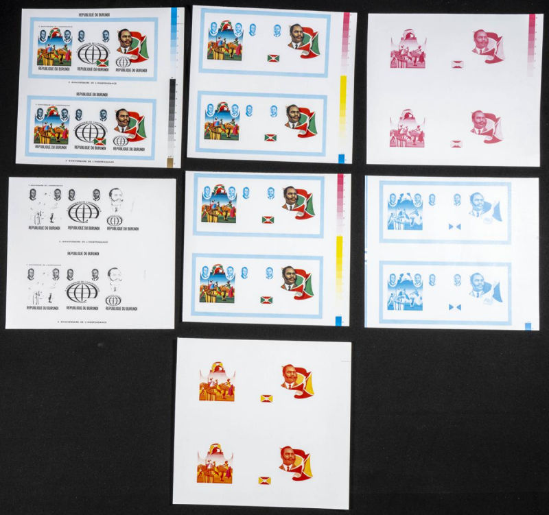 |**|Yvert B60/61. 1972. 10 years independence. Group of progressive plate proofs of the set. TO EXAM. Description of lots is limited to the cataloguing of the stamps and their characteristics. The total of the material included