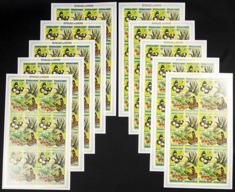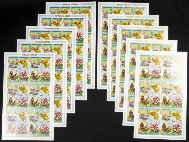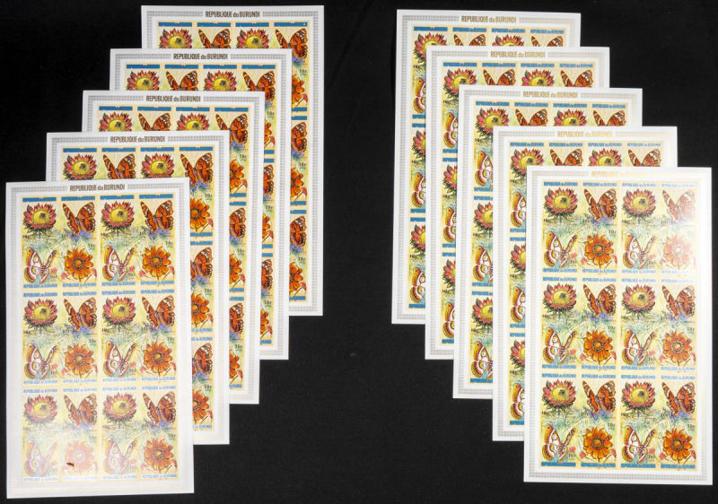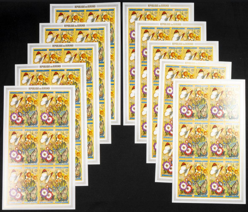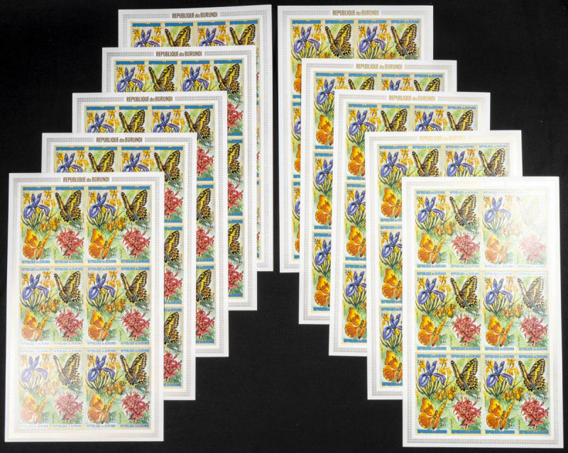 289/12. 1973. Flowers & butterflies. Group of IMPERFORATED sets. TO EXAM. Description of lots is limited to the cataloguing of the stamps and their characteristics. The total of the material included in each case is photographed to allow an