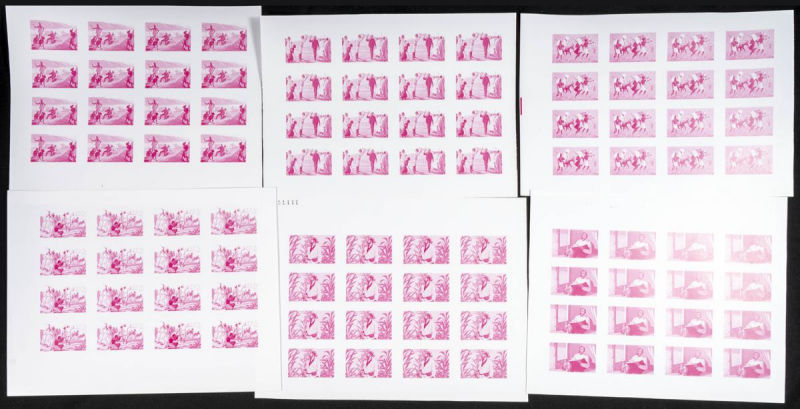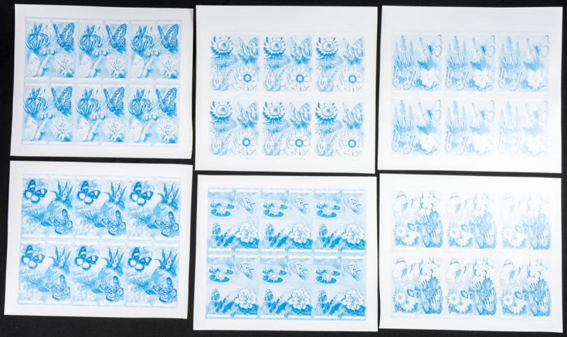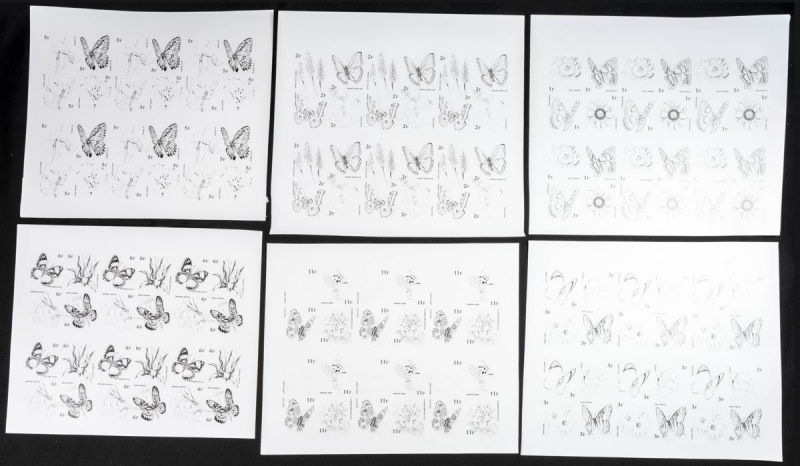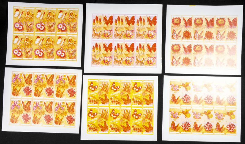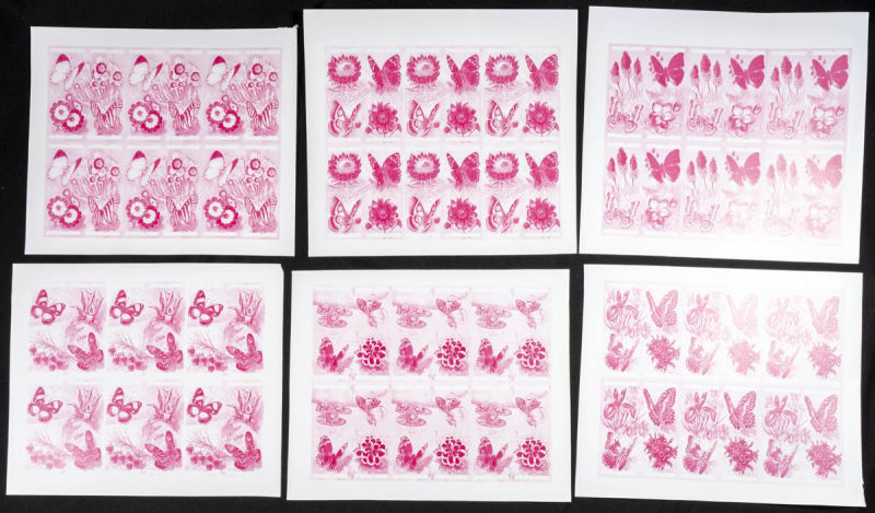 |**|Yvert . 1973. Flowers & butterflies. Group of progressive plate proofs of the set. (Michel: 963/10). TO EXAM. Description of lots is limited to the cataloguing of the stamps and their characteristics. The total of the