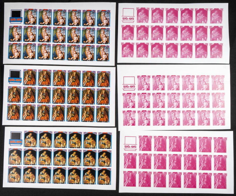 |**|Yvert B62/63. 1972. Christmas. Group of progressive plate proofs of the set. TO EXAM. Description of lots is limited to the cataloguing of the stamps and their characteristics. The total of the material included in each case