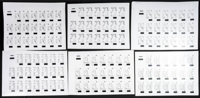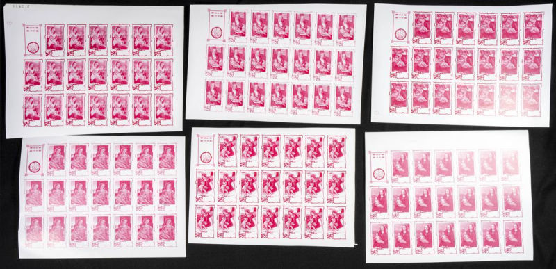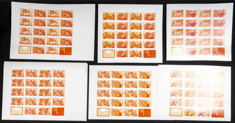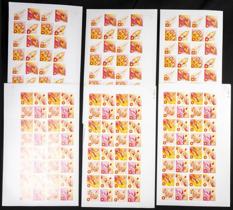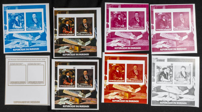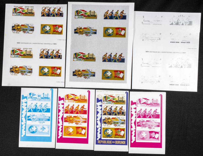 |**|Yvert B77. 1974. U.P.U. Centenary. Group of progressive plate proofs of the set. TO EXAM. Description of lots is limited to the cataloguing of the stamps and their characteristics. The total of the material included in each