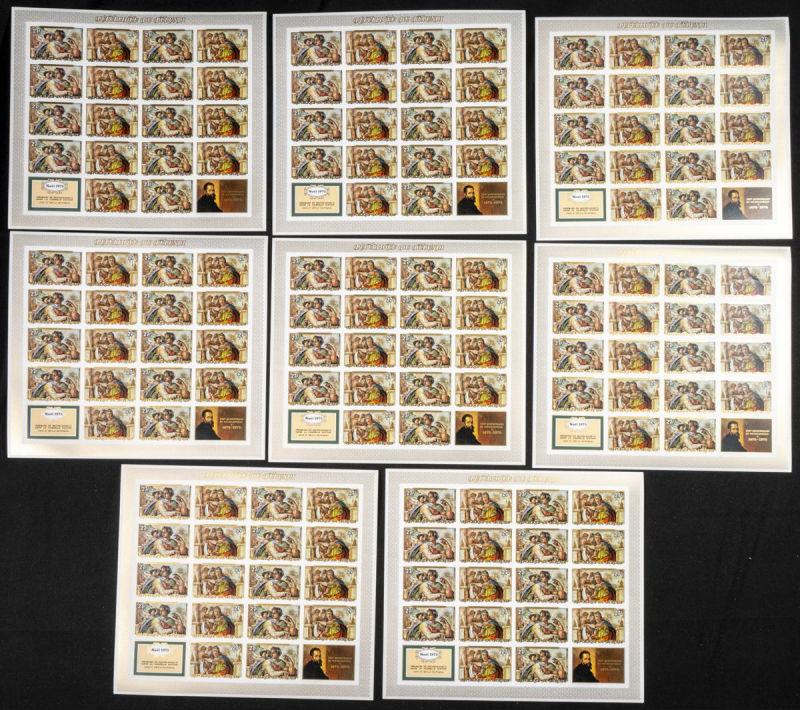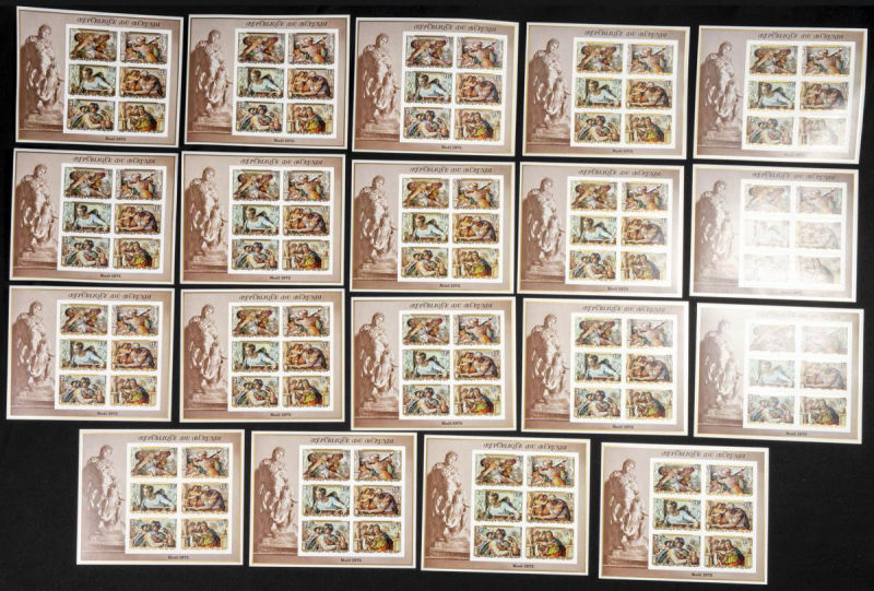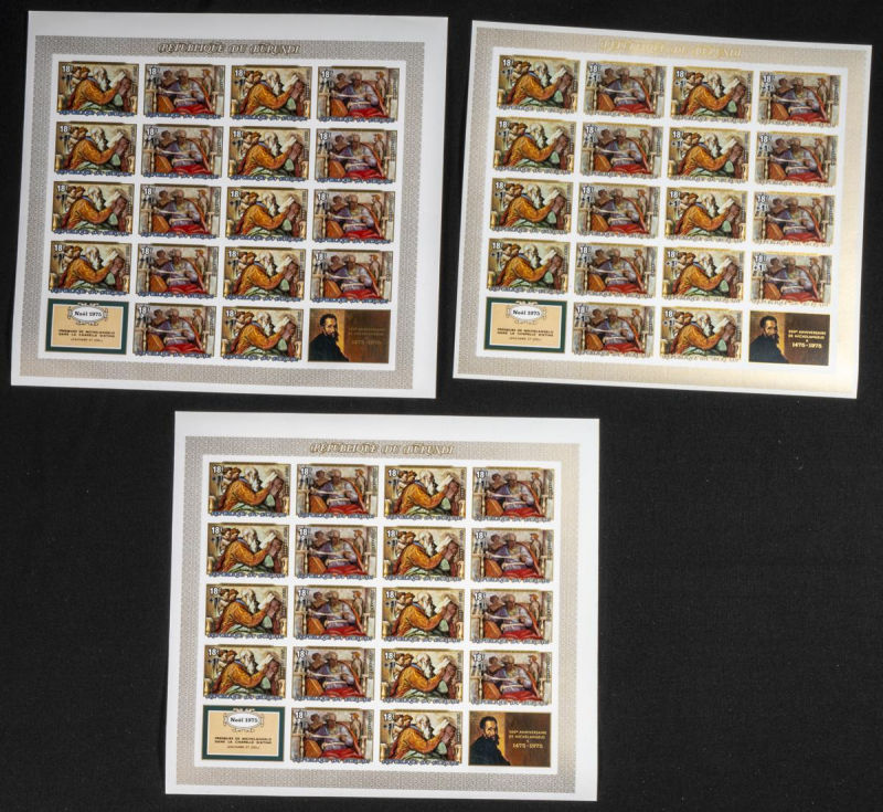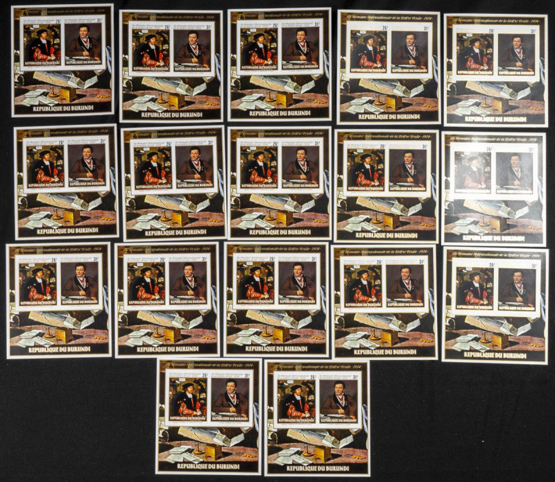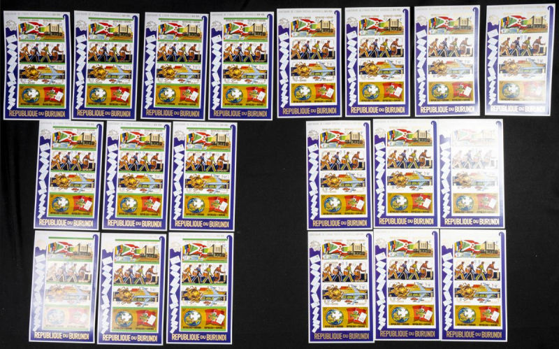 |**|Yvert B77/78. 1974. U.P.U. Centenary. Group of IMPERFORATED sets. TO EXAM. Description of lots is limited to the cataloguing of the stamps and their characteristics. The total of the material included in each case is