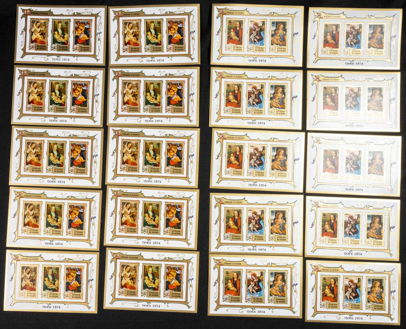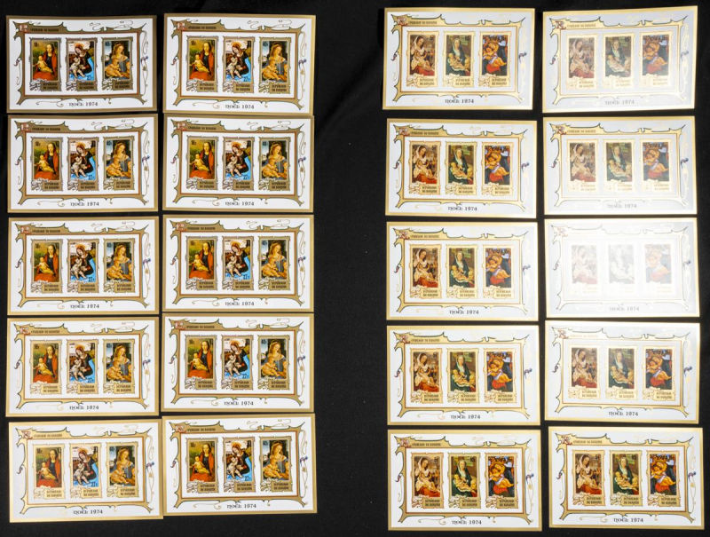 |**|Yvert B80/81. 1974. Christmas. Group of IMPERFORATED sets. TO EXAM. Description of lots is limited to the cataloguing of the stamps and their characteristics. The total of the material included in each case is photographed