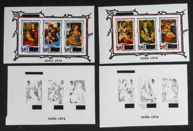 |**|Yvert B82/83. 1974. Christmas. Group of progressive plate proofs of the set. TO EXAM. Description of lots is limited to the cataloguing of the stamps and their characteristics. The total of the material included in each case