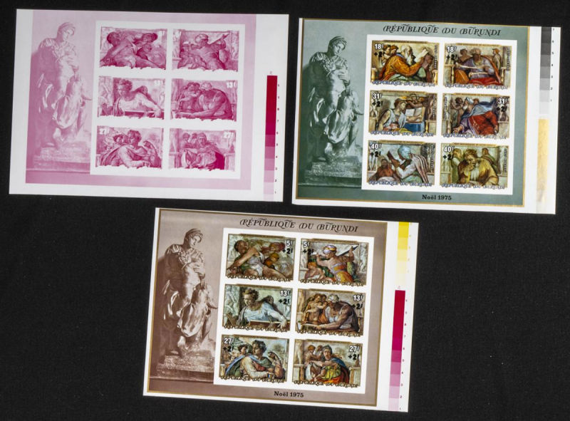 |**|Yvert 693/5+A. 1976. Christmas. Group of progressive plate proofs of the set. TO EXAM. Description of lots is limited to the cataloguing of the stamps and their characteristics. The total of the material included in each