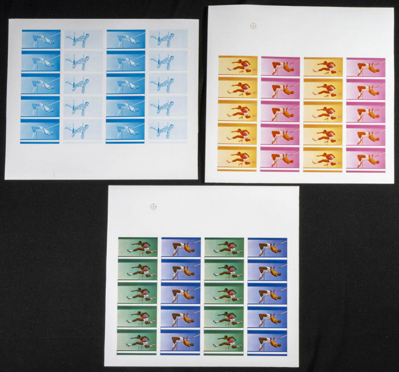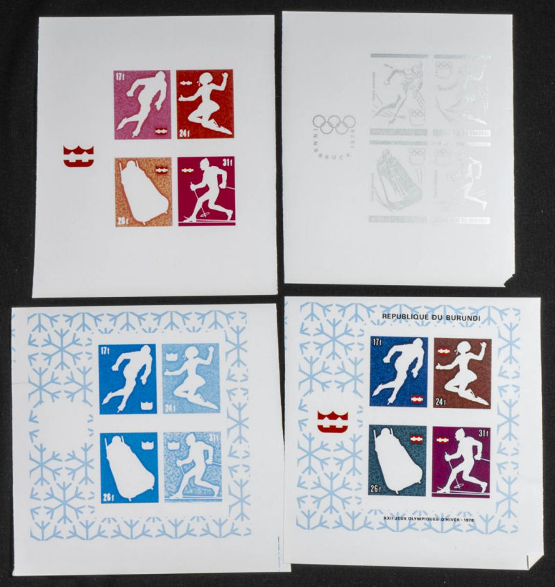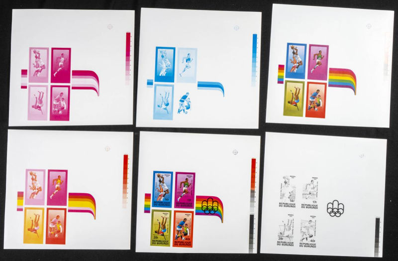 |**|Yvert B90. 1976. Olympic games-Montreal 1976. Group of progressive plate proofs of the set. TO EXAM. Description of lots is limited to the cataloguing of the stamps and their characteristics. The total of the material