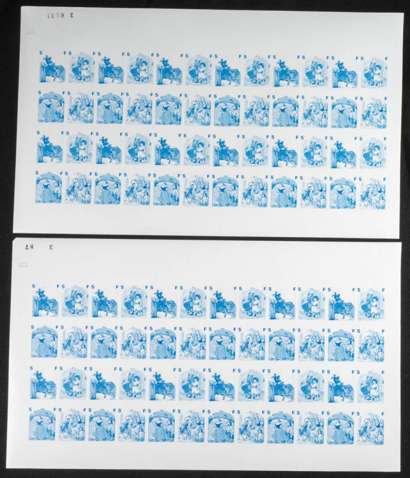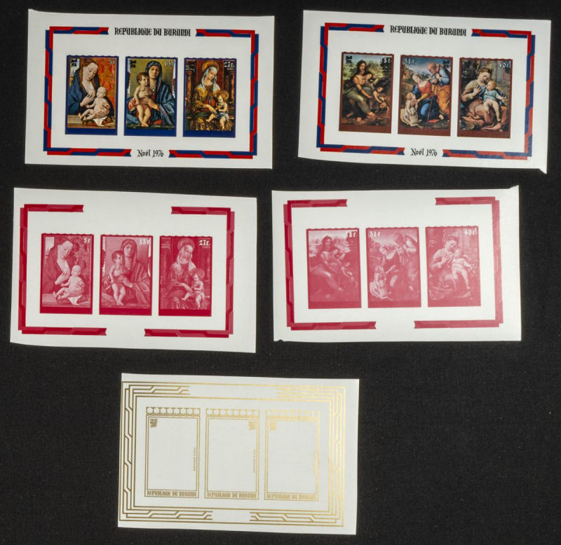 |**|Yvert B93/94. 1976. Christmas. Group of progressive plate proofs of the set. TO EXAM. Description of lots is limited to the cataloguing of the stamps and their characteristics. The total of the material included in each case