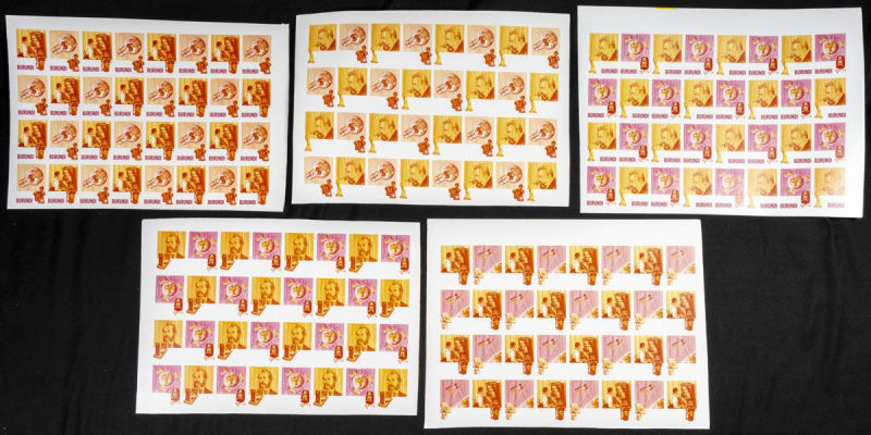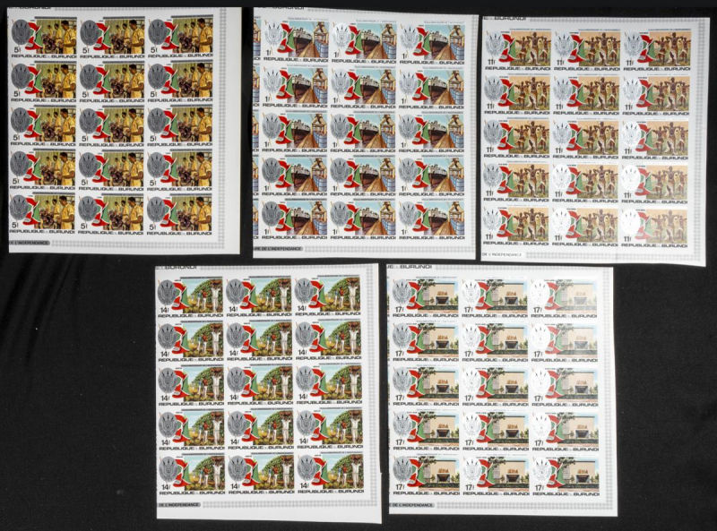 |**|Yvert 784/88. 1977. 15 years independence. Group of IMPERFORATED sets. TO EXAM. Description of lots is limited to the cataloguing of the stamps and their characteristics. The total of the material included in each case is