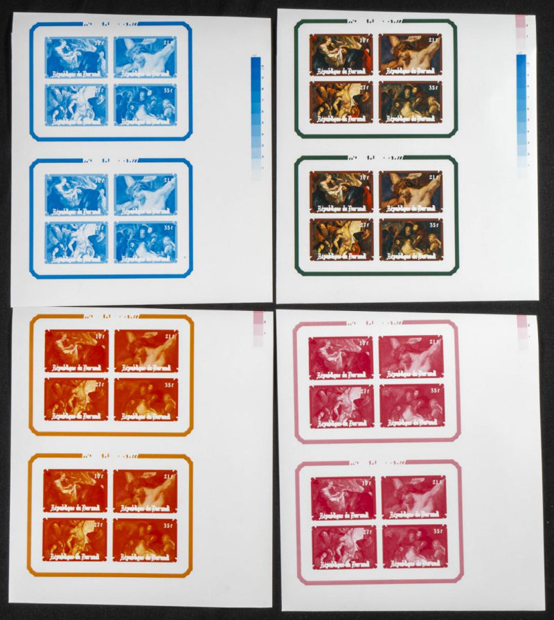 |**|Yvert B97. 1977. Easter. Group of progressive plate proofs of the set. TO EXAM. Description of lots is limited to the cataloguing of the stamps and their characteristics. The total of the material included in each case is