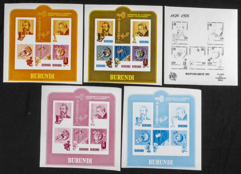 |**|Yvert B98. 1977. Telephone centenary. Group of progressive plate proofs of the set. TO EXAM. Description of lots is limited to the cataloguing of the stamps and their characteristics. The total of the material included in