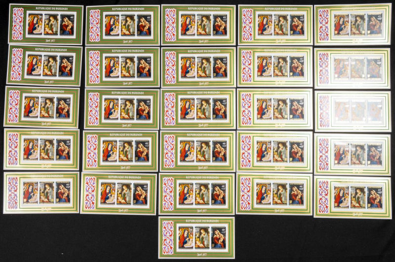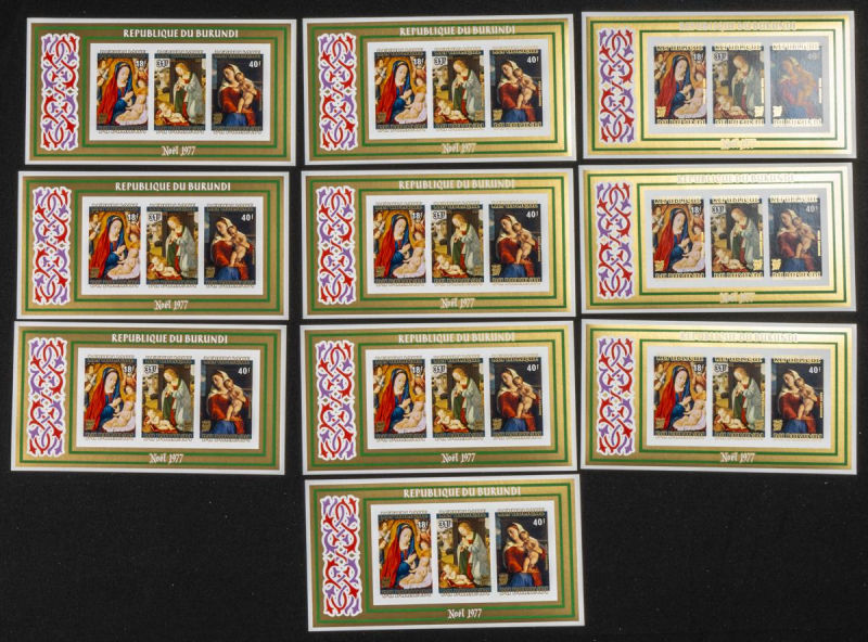 |**|Yvert B101. 1977. Christmas. Group of IMPERFORATED sets. TO EXAM. Description of lots is limited to the cataloguing of the stamps and their characteristics. The total of the material included in each case is photographed to