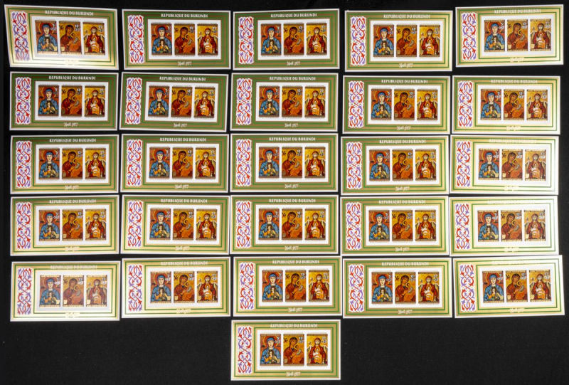 |**|Yvert B97. 1977. Easter. Group of IMPERFORATED sets. TO EXAM. Description of lots is limited to the cataloguing of the stamps and their characteristics. The total of the material included in each case is photographed to
