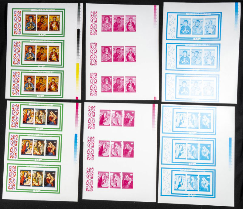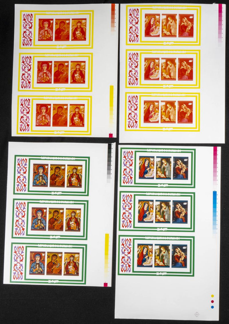 |**|Yvert . 1977. Christmas. Group of progressive plate proofs of the set. (Michel: 1429/34). TO EXAM. Description of lots is limited to the cataloguing of the stamps and their characteristics. The total of the material