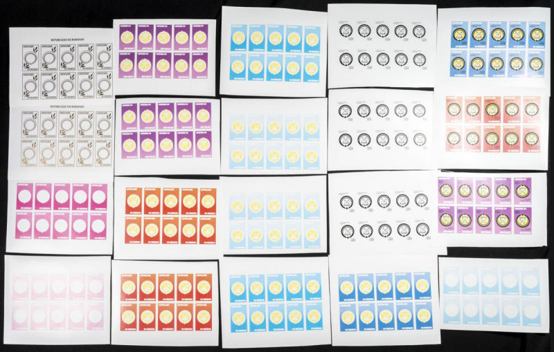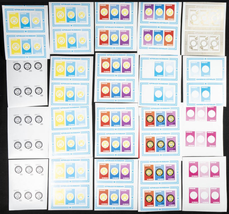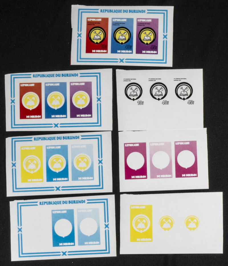 |**|Yvert B112. 1980. UPRONA congress. Group of progressive plate proofs of the set. TO EXAM. Description of lots is limited to the cataloguing of the stamps and their characteristics. The total of the material included in each