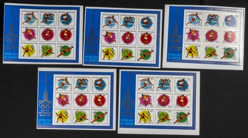|**|Yvert B110. 1980. Olympic Games-Moscow ’80. Group of IMPERFORATED sets. TO EXAM. Description of lots is limited to the cataloguing of the stamps and their characteristics. The total of the material included in each case is