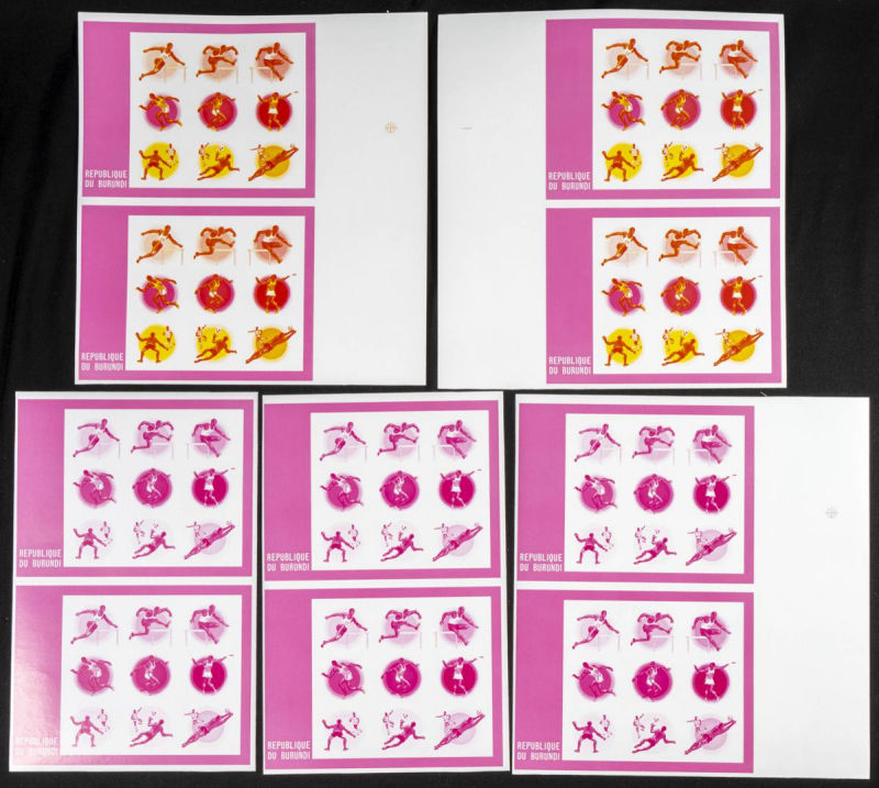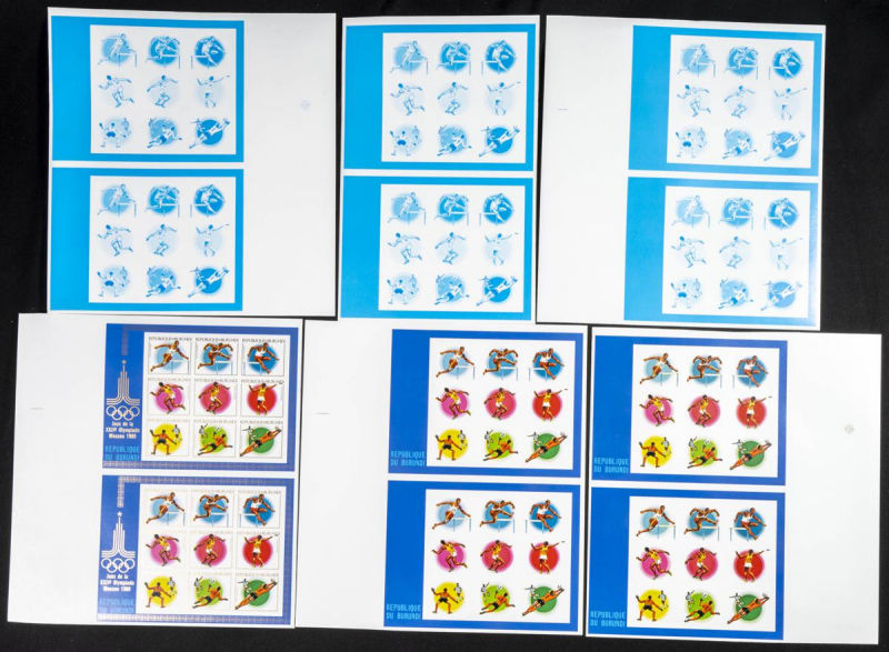 |**|Yvert B110. 1980. Olympic Games-Moscow ’80. Group of progressive plate proofs of the set. TO EXAM. Description of lots is limited to the cataloguing of the stamps and their characteristics. The total of the material included