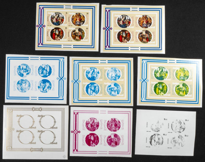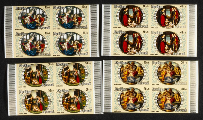 |**|Yvert . 1981. Christmas (1980). Group of IMPERFORATED sets. (Michel: 1558/61). TO EXAM. Description of lots is limited to the cataloguing of the stamps and their characteristics. The total of the material included in each