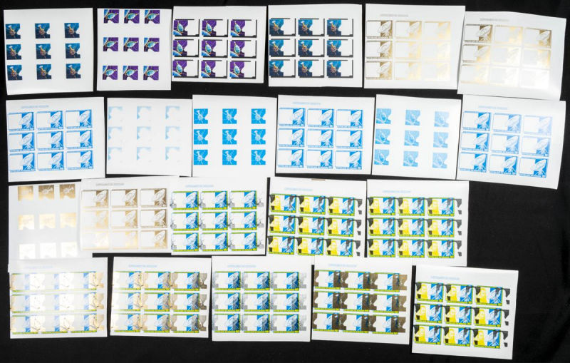 |**|Yvert 841/43. 1981. UPRONA congress. Group of progressive plate proofs of the set. TO EXAM. Description of lots is limited to the cataloguing of the stamps and their characteristics. The total of the material included in