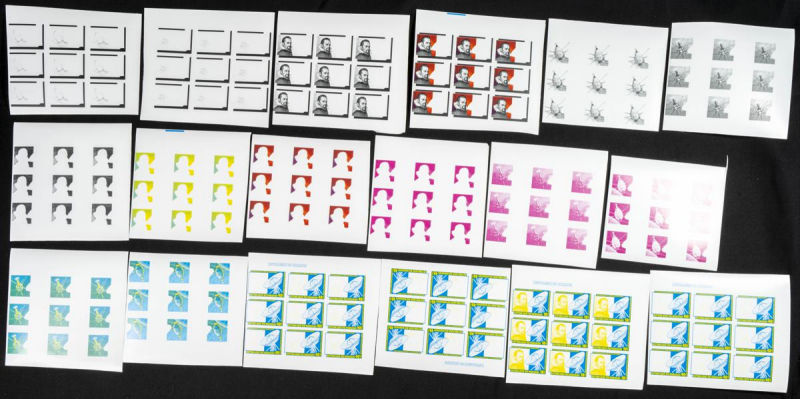 |**|Yvert B114. 1981. J. Kepler. Group of progressive plate proofs of the set. TO EXAM. Description of lots is limited to the cataloguing of the stamps and their characteristics. The total of the material included in each case