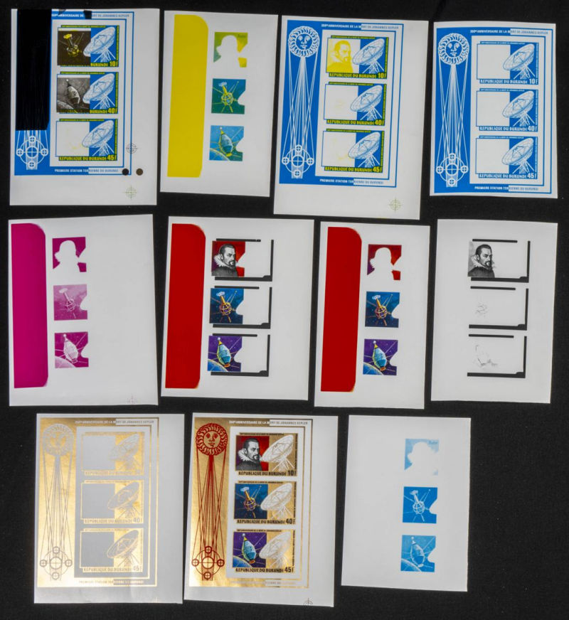 |**|Yvert . 1981. Th. Kepler. Group of progressive plate proofs of the set. (Michel: B117). TO EXAM. Description of lots is limited to the cataloguing of the stamps and their characteristics. The total of the material included