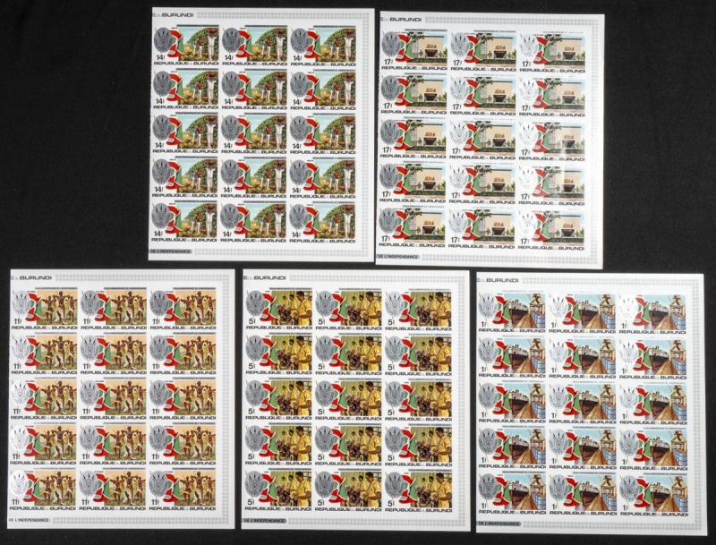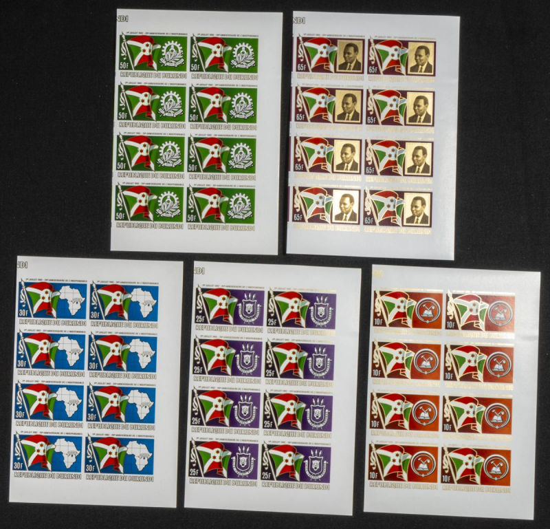 |**|Yvert 877/81. 1982. 20º aniv independance. Group of IMPERFORATED sets. TO EXAM. Description of lots is limited to the cataloguing of the stamps and their characteristics. The total of the material included in each case is