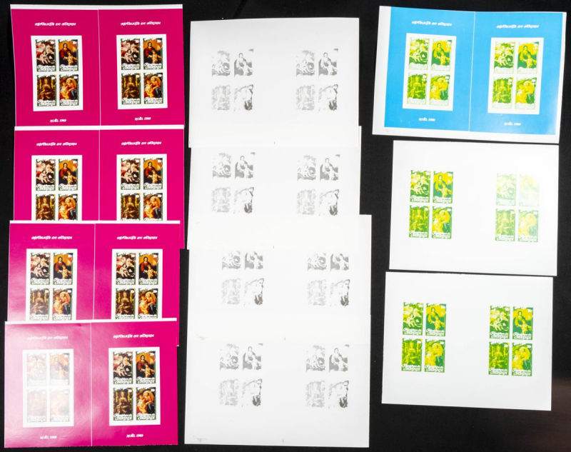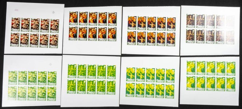 |**|Yvert . 1981. Christmas (1980). Group of progressive plate proofs of the set. (Michel: B115). TO EXAM. Description of lots is limited to the cataloguing of the stamps and their characteristics. The total of the material