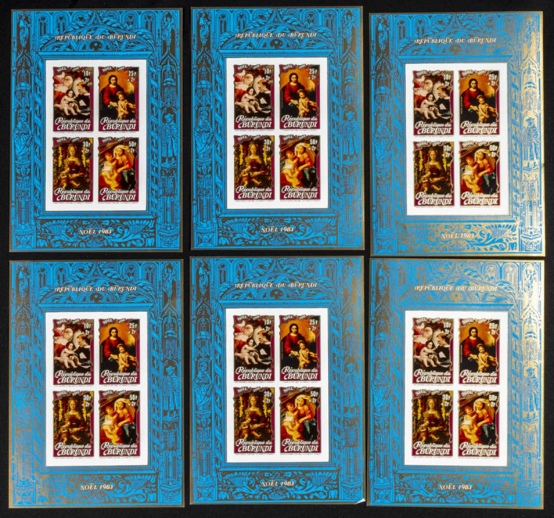 |**|Yvert B115. 1983. Christmas. Group of IMPERFORATED sets. TO EXAM. Description of lots is limited to the cataloguing of the stamps and their characteristics. The total of the material included in each case is photographed to