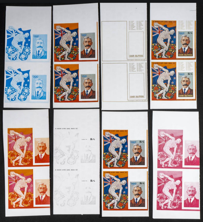|**|Yvert B15. 1972. Olympic games-Munich ’72. Group of progressive plate proofs of the set. TO EXAM. Description of lots is limited to the cataloguing of the stamps and their characteristics. The total of the material included