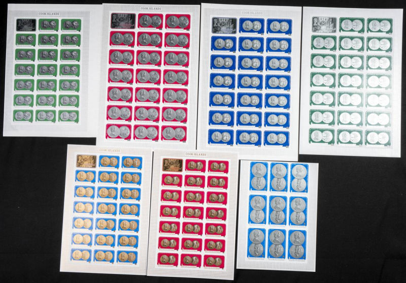 |**|Yvert 332/38. 1973. Coins. Group of IMPERFORATED sets. TO EXAM. Description of lots is limited to the cataloguing of the stamps and their characteristics. The total of the material included in each case is photographed to