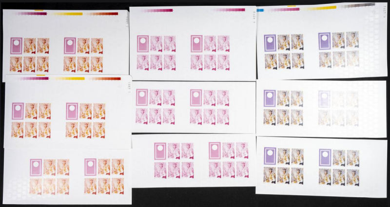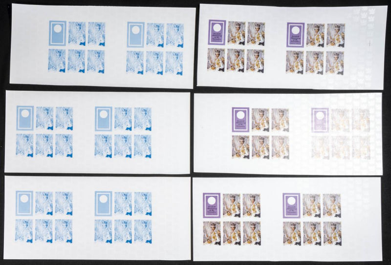 |**|Yvert 348. 1973. Coronation anniversary. Group of progressive plate proofs of the set. TO EXAM. Description of lots is limited to the cataloguing of the stamps and their characteristics. The total of the material included in