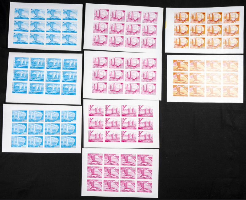 |**|Yvert 349/55. 1973. Native ships. Group of progressive plate proofs of the set. TO EXAM. Description of lots is limited to the cataloguing of the stamps and their characteristics. The total of the material included in each