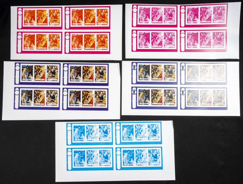 |**|Yvert B19. 1973. Easter. Group of progressive plate proofs of the set. TO EXAM. Description of lots is limited to the cataloguing of the stamps and their characteristics. The total of the material included in each case is