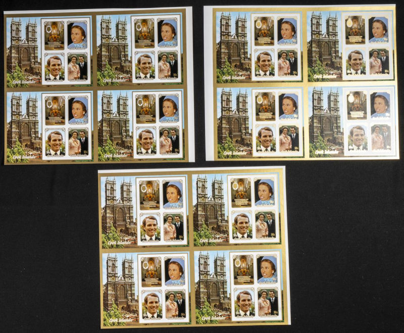 |**|Yvert 361/63. 1973. Anne/Mark wedding. Group of IMPERFORATED sets. TO EXAM. Description of lots is limited to the cataloguing of the stamps and their characteristics. The total of the material included in each case is