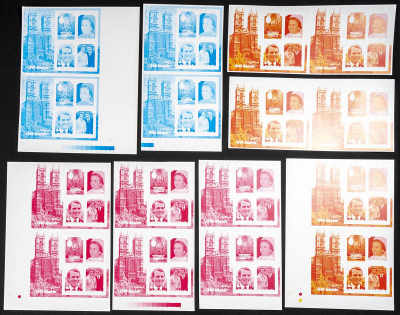 |**|Yvert B25. 1973. Anne/Mark wedding. Group of progressive plate proofs of the set. TO EXAM. Description of lots is limited to the cataloguing of the stamps and their characteristics. The total of the material included in each