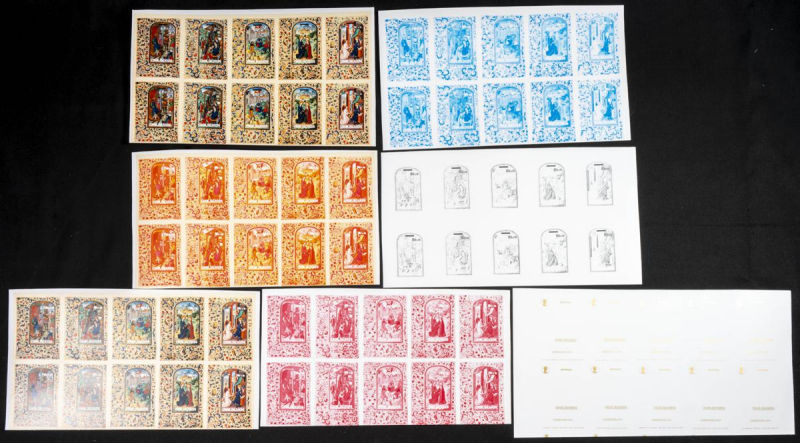 |**|Yvert B24. 1973. Christmas. Group of progressive plate proofs of the set. TO EXAM. Description of lots is limited to the cataloguing of the stamps and their characteristics. The total of the material included in each case is