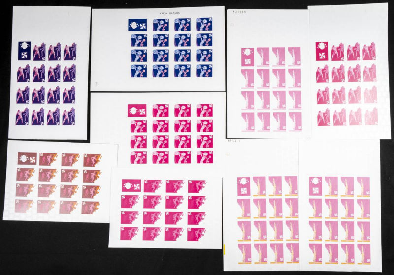 |**|Yvert 389/90. 1974. James Cook, coins. Group of progressive plate proofs of the set. TO EXAM. Description of lots is limited to the cataloguing of the stamps and their characteristics. The total of the material included in
