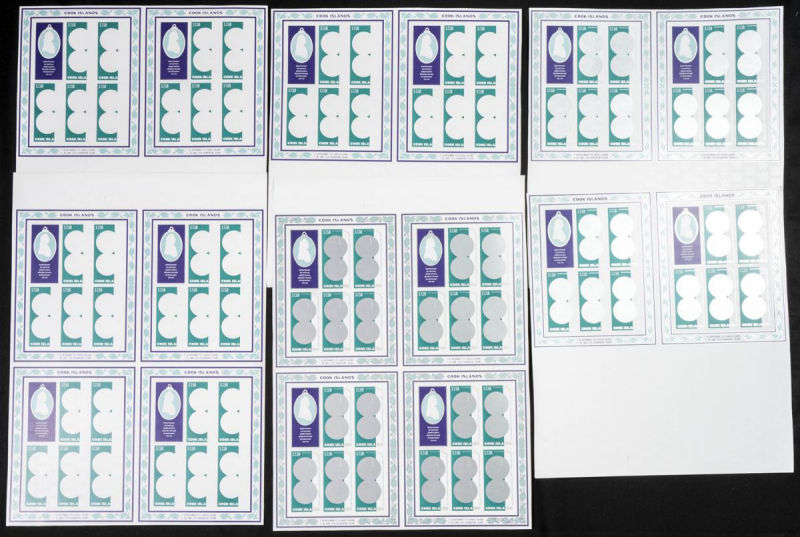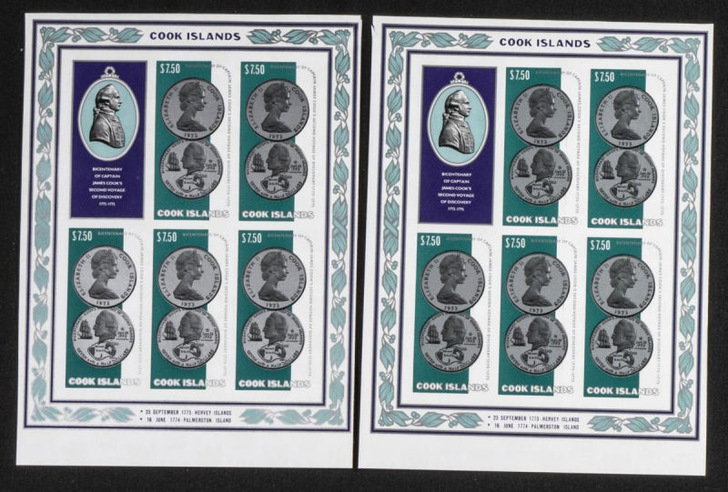 |**|Yvert 389/90. 1974. James Cook, coins. Group of IMPERFORATED sets. TO EXAM. Description of lots is limited to the cataloguing of the stamps and their characteristics. The total of the material included in each case is