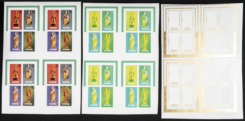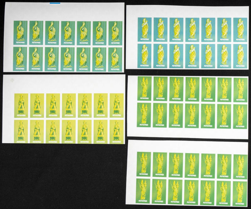 B30. 1980. Local art. Group of IMPERFORATED sets. TO EXAM. Description of lots is limited to the cataloguing of the stamps and their characteristics. The total of the material included in each case is photographed to allow an assessment of
