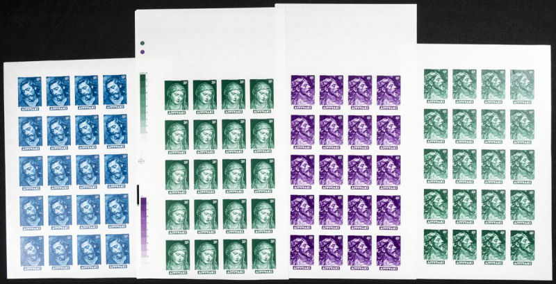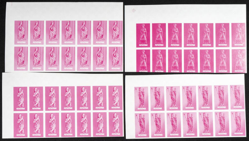 B30. 1980. Local art. Group of progressive plate proofs of the set. TO EXAM. Description of lots is limited to the cataloguing of the stamps and their characteristics. The total of the material included in each case is photographed to allow